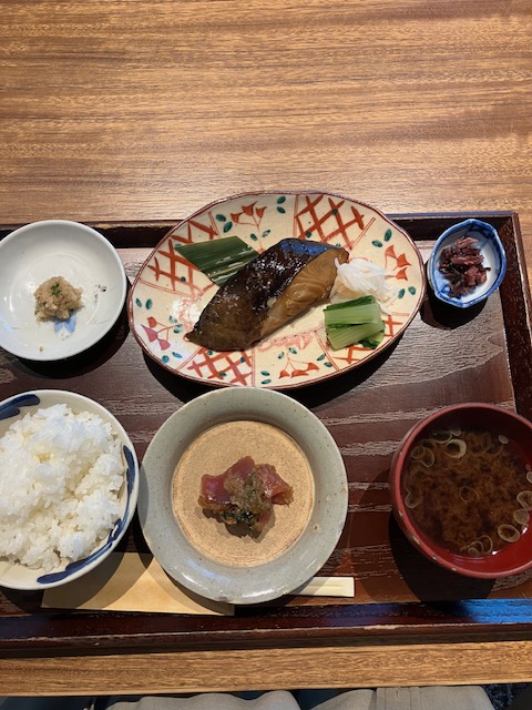 鱈がとっても脂がのっていて、左上の箸休めの大根おろしと梅のたたきがさっぱりしていました。焼き鱈には江戸野菜のお浸しが添えられていました。