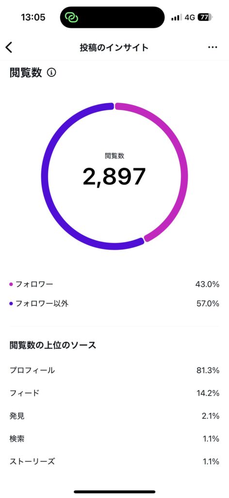 フィード投稿によっては90%以上がフォロワーのフィード投稿もあります。