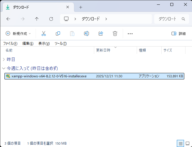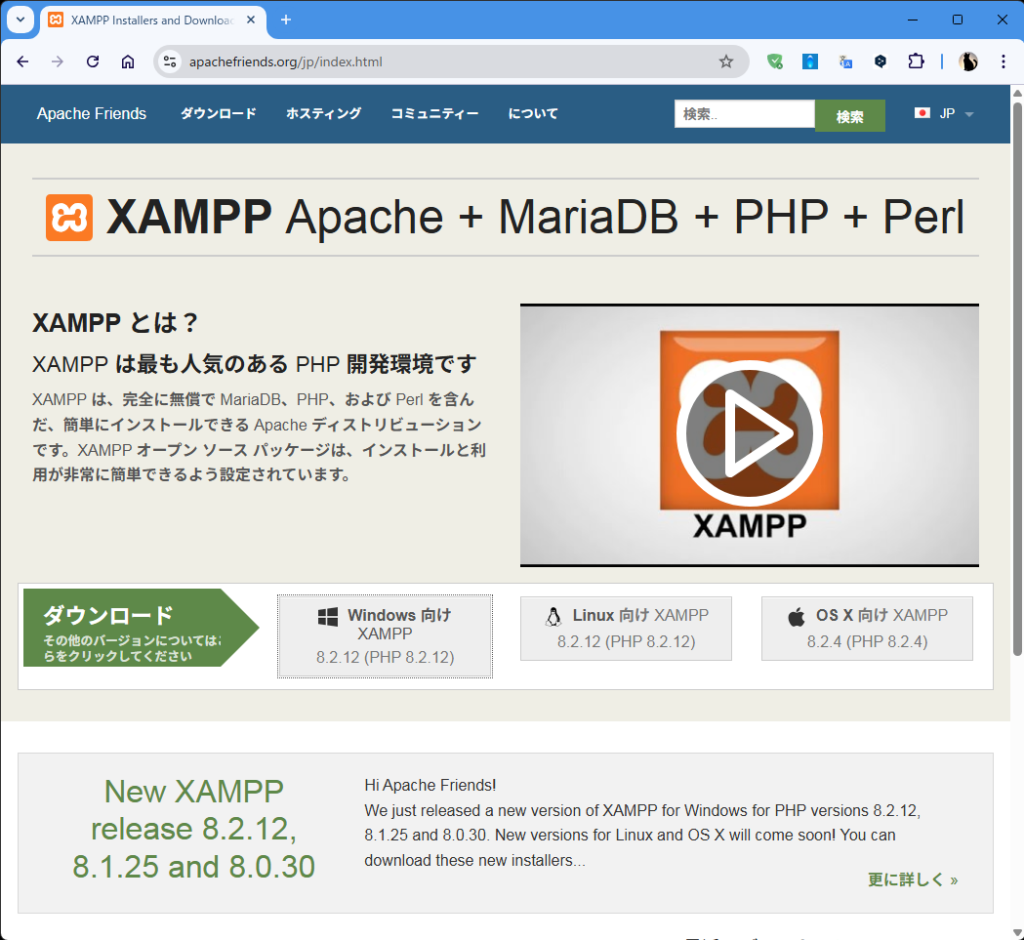 xampp_windows_8.2.12_setup.exe / XAMPP_MacOS_などをダウンロード(2025/12/24時点)8.2.12.dmg / xampplinux-8.2.12.tar.gz