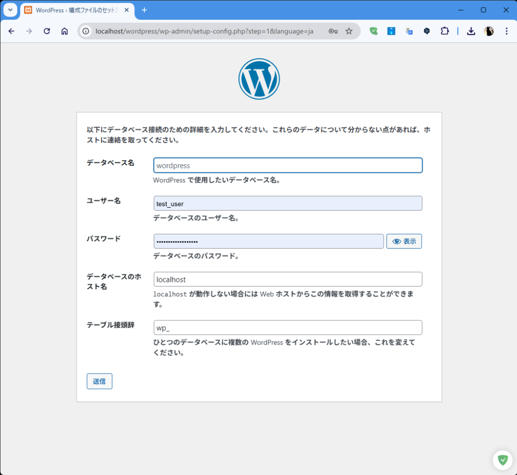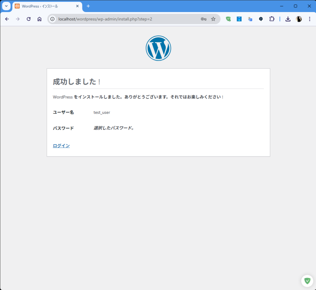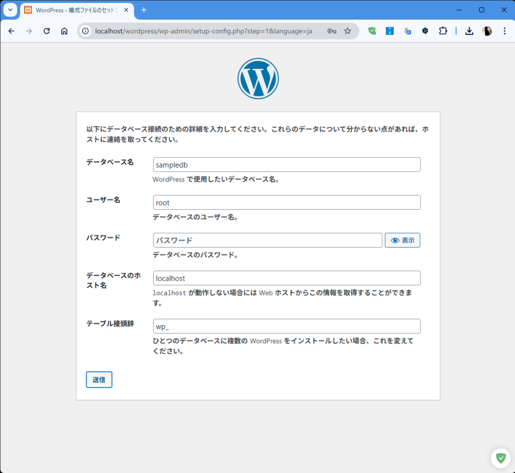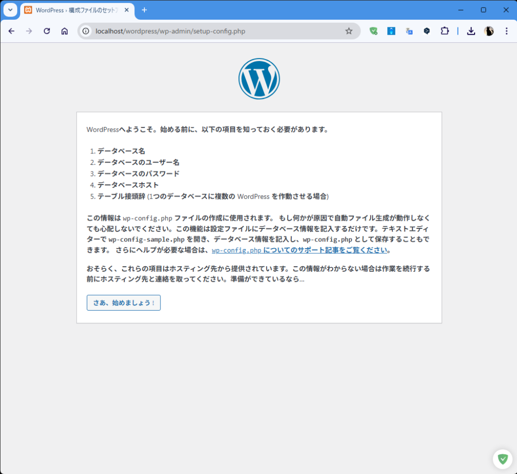 - ブラウザで「http://localhost/wordpress」と入力し移動