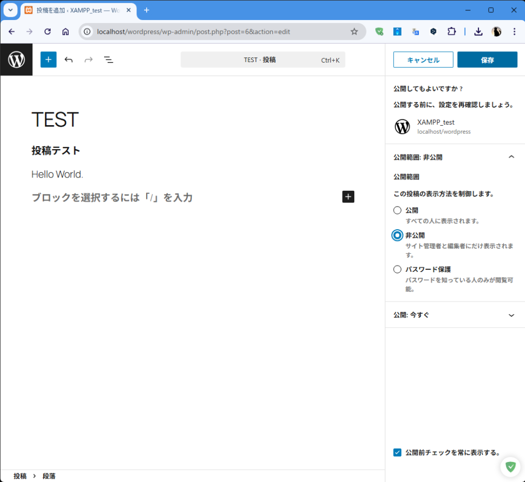 - 非公開を選択し「保存」をクリック