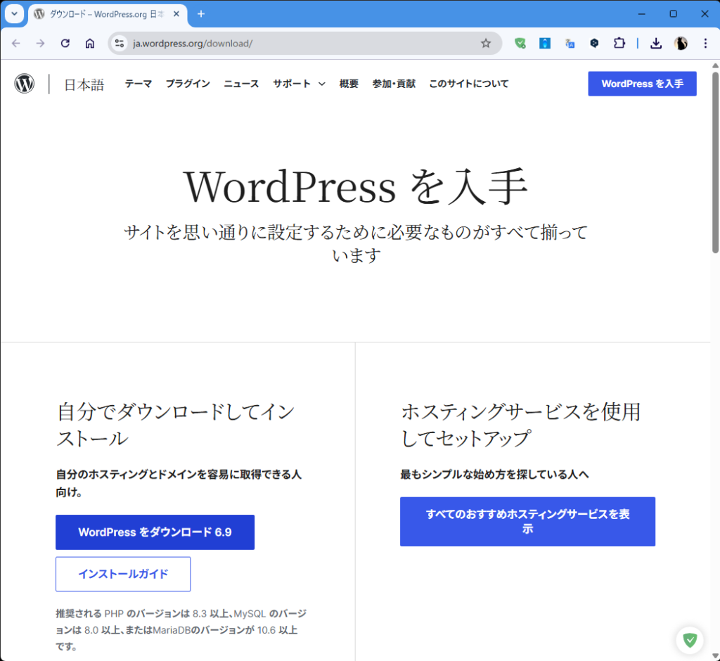 WordPress のダウンロードとインストール