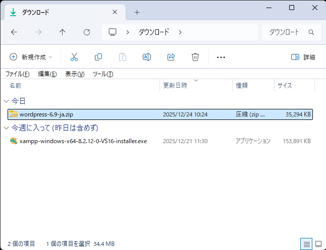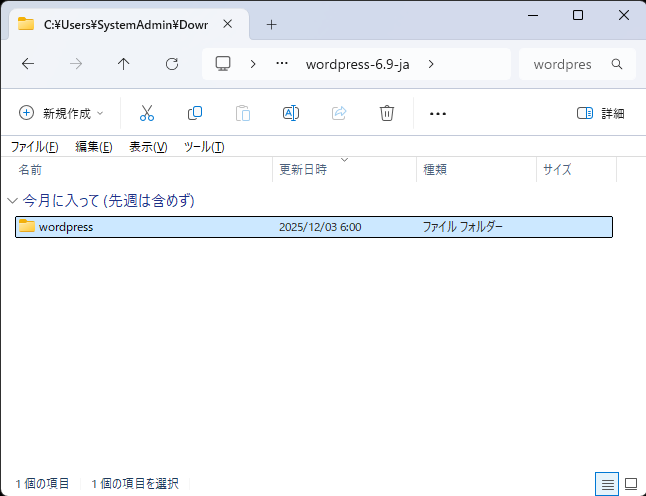 - ダウンロードした「wordpress-6.9-ja.zip」を展開