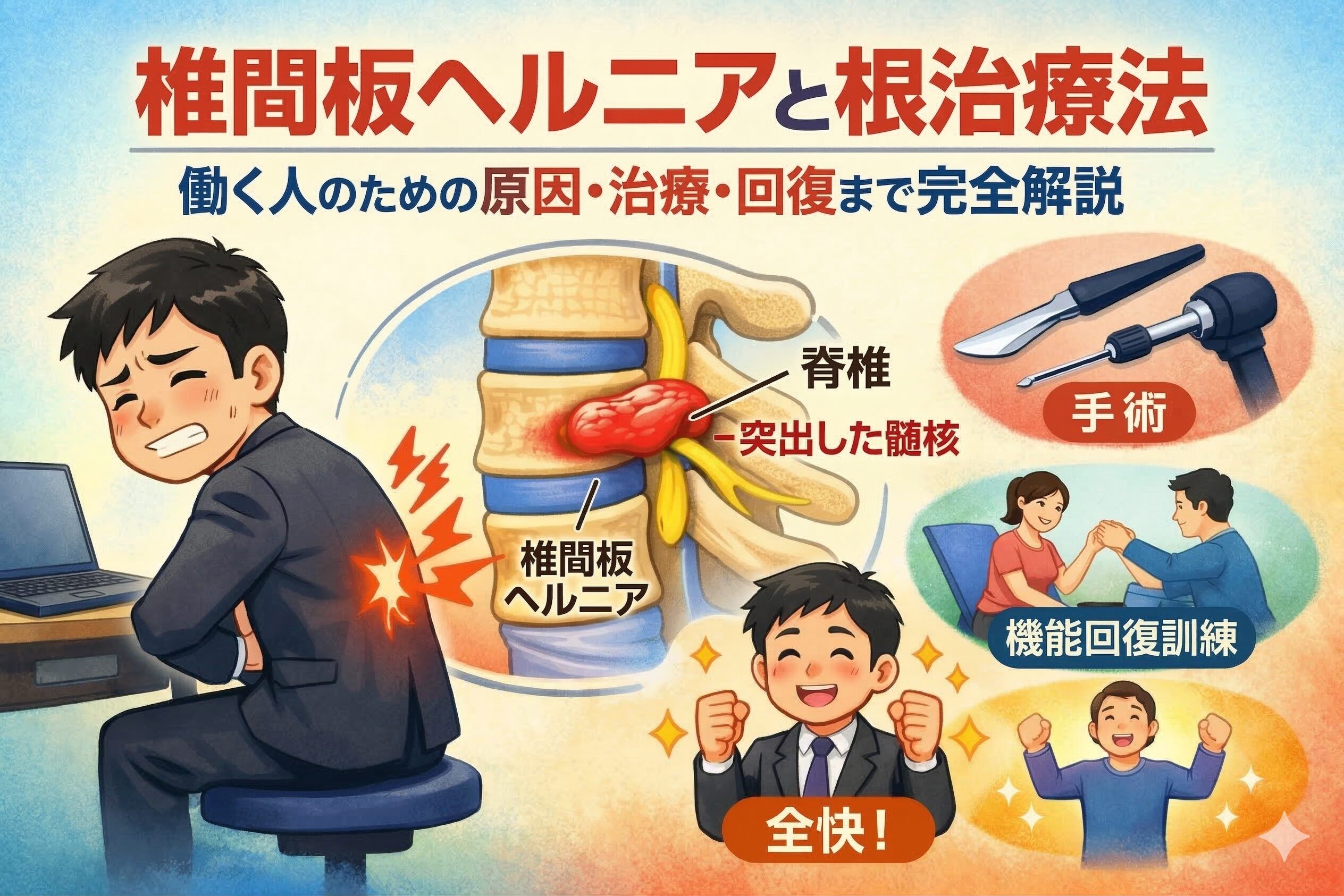 椎間板ヘルニアは、デスクワークが多い現代人に増えている疾患です。